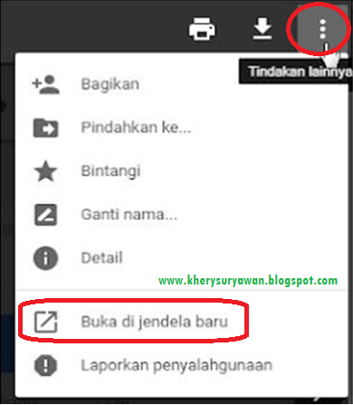 File yang kita klik dua kali akan terbuka di browser, di pojok kanan atas file atau dokumen yang terbuka klik “tiga titik”lalu klik “Buka di jendela baru”. Browser akan menampilkannya di jendela baru, serupa dengan yang sebelumnya, bedanya url yang ditampilkan menjadi url file/dokumen yang ingin disematkan (display).